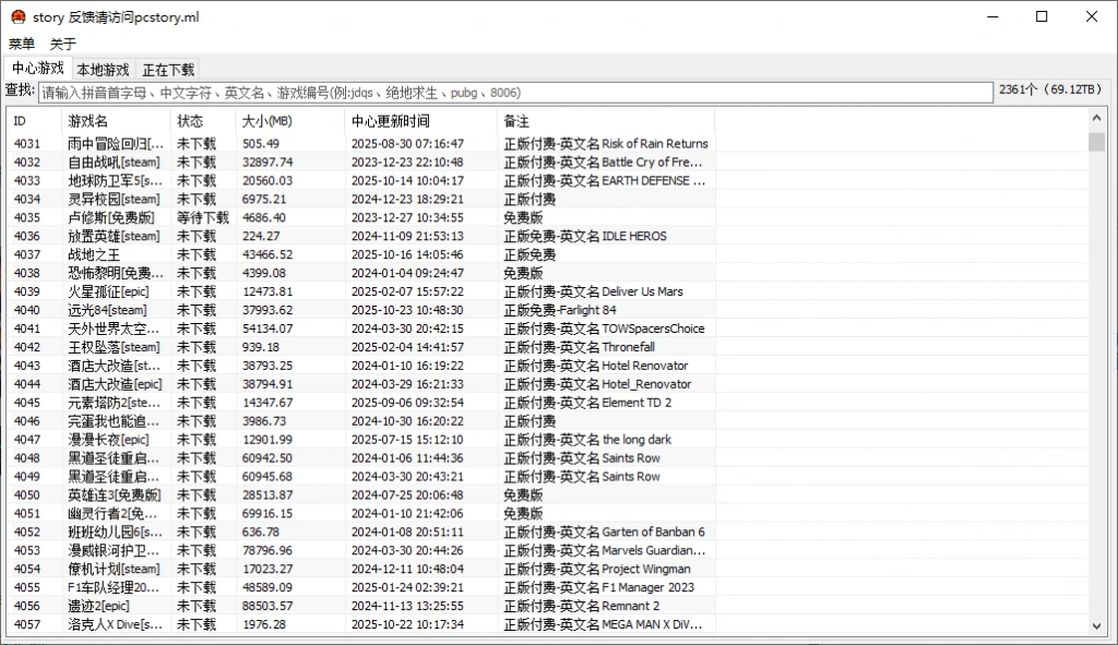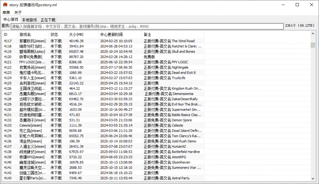 - 软件支持通过中英文名称和游戏编号进行搜索游戏