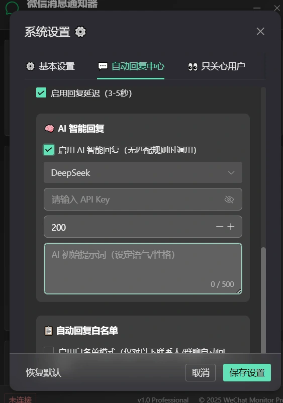 - 信息特别关心,白名单,群回复,ai自动回复,关键词回复